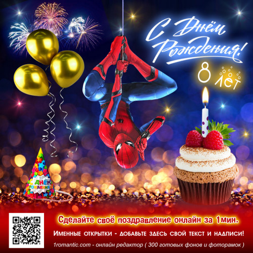 Выберите и скачайте уникальные открытки к дню рождения ребенку на 8 лет, которые сможете персонализировать, добавляя личные фото ребенка,текст пожеланий по своему вкусу: