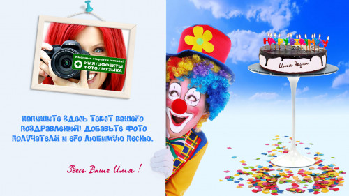 Не печальтесь, будьте счастливыми! Именно такого девиза стоит придерживаться каждому, в такой праздничный день эта фраза особенно важна и будет уместна! Поднимите своему имениннику настроение, при помощи прикольного поздравления. Такое оригинальное поздравление с днем рождения никого не оставит без улыбки – не детей, не взрослых. Весёлый и добродушный клоун знает свое дело, вам остается написать всего лишь несколько приятных строк и добавить по желанию свою любимую музыкальную композицию, тогда ваша видео открытка приобретет свой личный и неповторимый шарм!