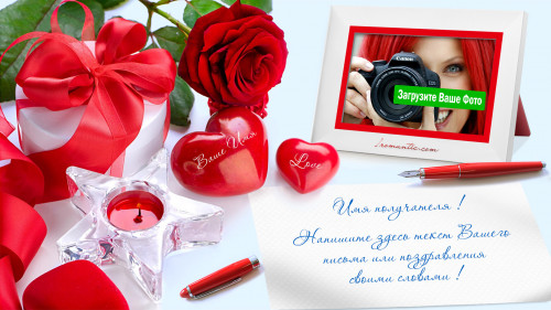 Такая нежная музыкальная открытка станет прекрасным решением для романтичного поздравления вашей любимой. Добавьте совместную фотографию, красивую мелодию и трогательный текст поздравления. За пару минут вы создадите бесподобное именное поздравление