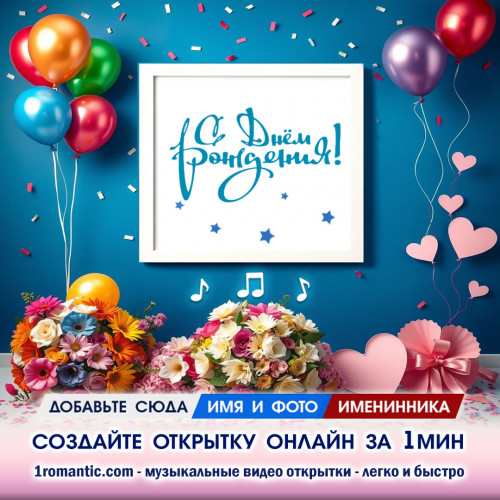 Скачайте персональную открытку и отправьте имениннику на телефон.