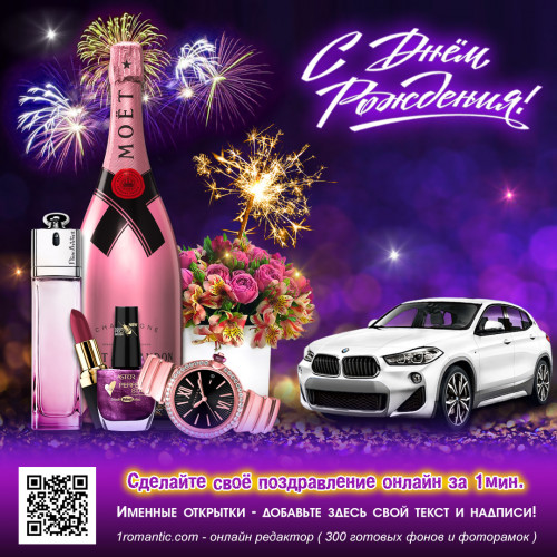 Порадуйте именинницу стильной современной открыткой! Для того чтобы сделать поздравление по-настоящему особенным, предлагаем вам персонализировать выбранную открытку любимой женщине, всего в три шага: