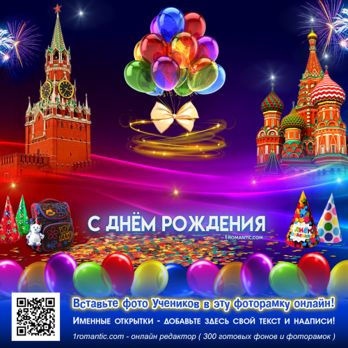Готово! Уникальная, именная открытка готова. Скачайте её и подарите ученику незабываемый подарок. Отправьте открытку прямо на телефон и порадуйте именинника в его праздник!