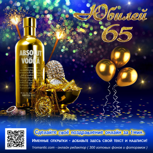 Выберите и скачайте открытоку для поздравления мужчины с 65-летним юбилеем. Чтобы сделать презент еще более особенным, предлагаем вам персонализировать выбранную открытку. Ваше поздравление станет уникальным и запоминающимся, отличающему его от стандартных поздравлений.