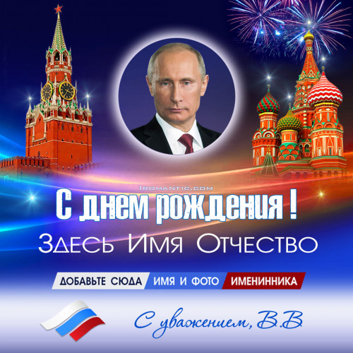 Ключевые слова: Поздравление с днем рождения женщине, поздравление от Путина, именная открытка, скачать открытку, яркие открытки, праздничные открытки, оригинальный подарок, незабываемый подарок, подарок женщине, день рождения, пожелания, трогательные поздравления, красивые открытки, современные открытки, изображения, картинки, подарить, персонализированный подарок.