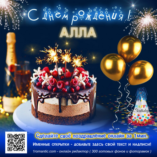 Выберите и скачайте идеальную открытку с Днём рождения для Аллы! Мы предлагаем не просто открытки, а возможность создать уникальное поздравление. Персонализируйте любую понравившуюся открытку, добавив личные нотки: