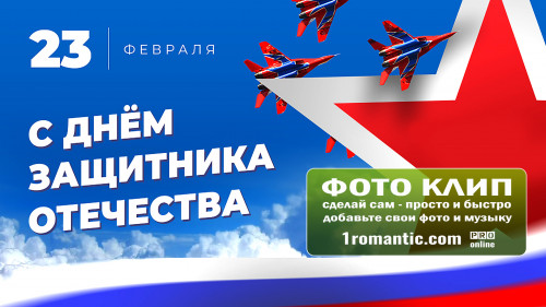 Как сделать красивую презентацию мужчине с днем защитника Отечества? Быстрое создание презентации онлайн с предварительным просмотром, без регистрации, подписок, скачиваний и установки программ. Для этого выберите в нашей популярной коллекции понравившийся современный оригинальный шаблон, вставьте в готовый макет фотографии, картинки, изображения, надписи, любимую песню, звуковую аудио дорожку, используя встроенный профессиональный редактор для монтажа и наложения музыки на фото с разнообразными качественными видео эффектами. С помощью данного приложения, создать и скачать слайд-шоу видеоклип самостоятельно на нашем сервисе просто и легко, как на компьютере, так и телефоне айфон, андроид.